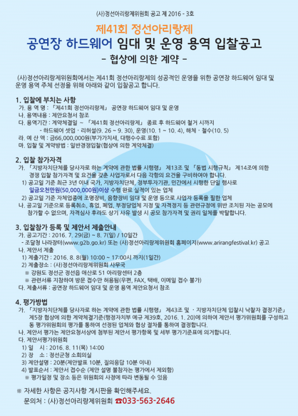 공연장 하드웨어 임대 및 운영 용역 입찰공고 페이지 정보 작성자 관리자 작성일16-07-29 08:38 조회18,560회 관련링크 이전글 다음글 목록 본문 공고문 이전글 다음글 목록