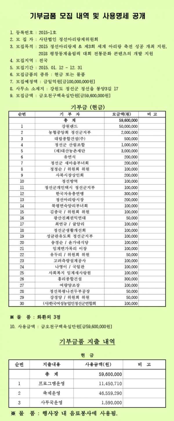 기부금 모집내역 및 사용명세 공개 페이지 정보 작성자 관리자 작성일15-11-26 23:58 조회18,764회 관련링크 이전글 다음글 목록 본문 기부금 모집내역 및 사용명세 공개 이전글 다음글 목록