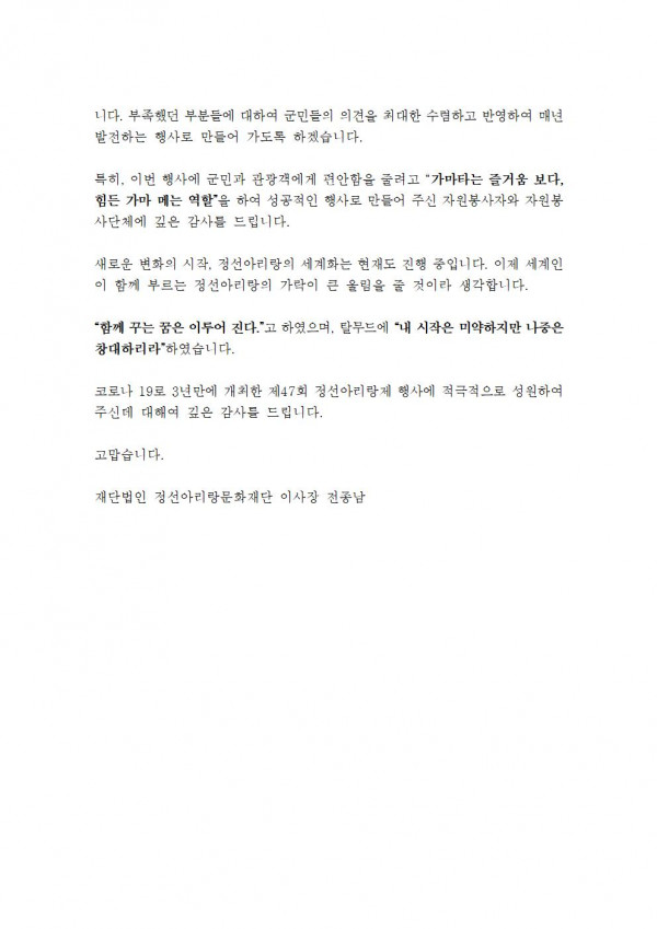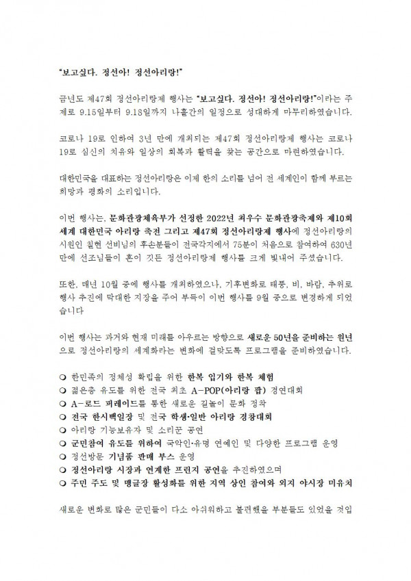 정선아리랑제를 마치며...