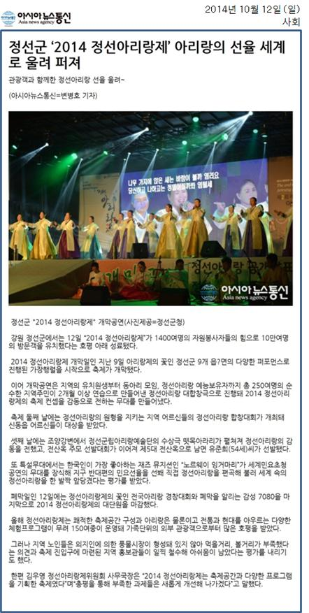 정선군 '2014 정선아리랑제' 아리랑의 선율 세계로 울려 퍼져 페이지 정보 작성자 관리자 작성일19-07-17 20:09 조회17,781회 관련링크 이전글 다음글 목록 본문 정선군 '2014 정선아리랑제' 개막공연 이전글 다음글 목록