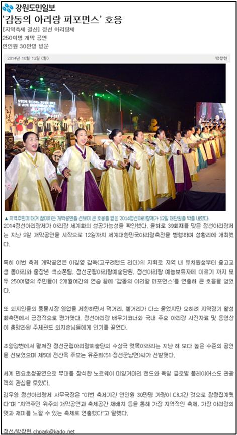 '감동의 아리랑 퍼포먼스' 호응 페이지 정보 작성자 관리자 작성일19-07-17 20:13 조회17,552회 관련링크 이전글 다음글 목록 본문 250여명의 주민들이 약 2달동안 연습 끝에 '감동의 아리랑 퍼포먼스' 를 연출 이전글 다음글 목록