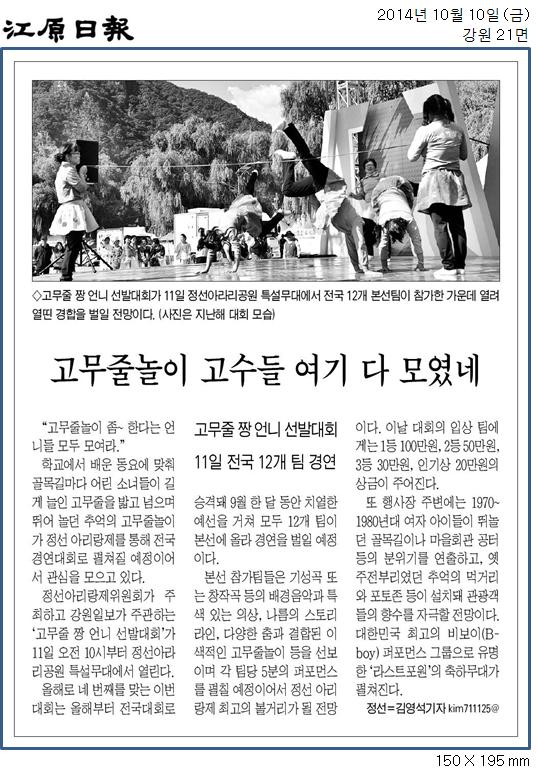 고물줄놀이 고수들 여기 다 모엿네 페이지 정보 작성자 관리자 작성일19-07-16 21:33 조회17,692회 관련링크 이전글 다음글 목록 본문 고무줄 짱 언니 선발대회 전국 12개 팀 경연 이전글 다음글 목록