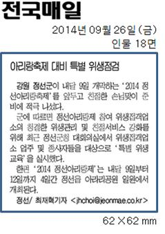 아리랑 축제대비 특별 위생 점검 페이지 정보 작성자 관리자 작성일19-07-16 19:04 조회17,546회 관련링크 이전글 다음글 목록 본문 위생접객업소 업주및 종사자들을 대상으로 특별 위생교육을 실시햇다 이전글 다음글 목록