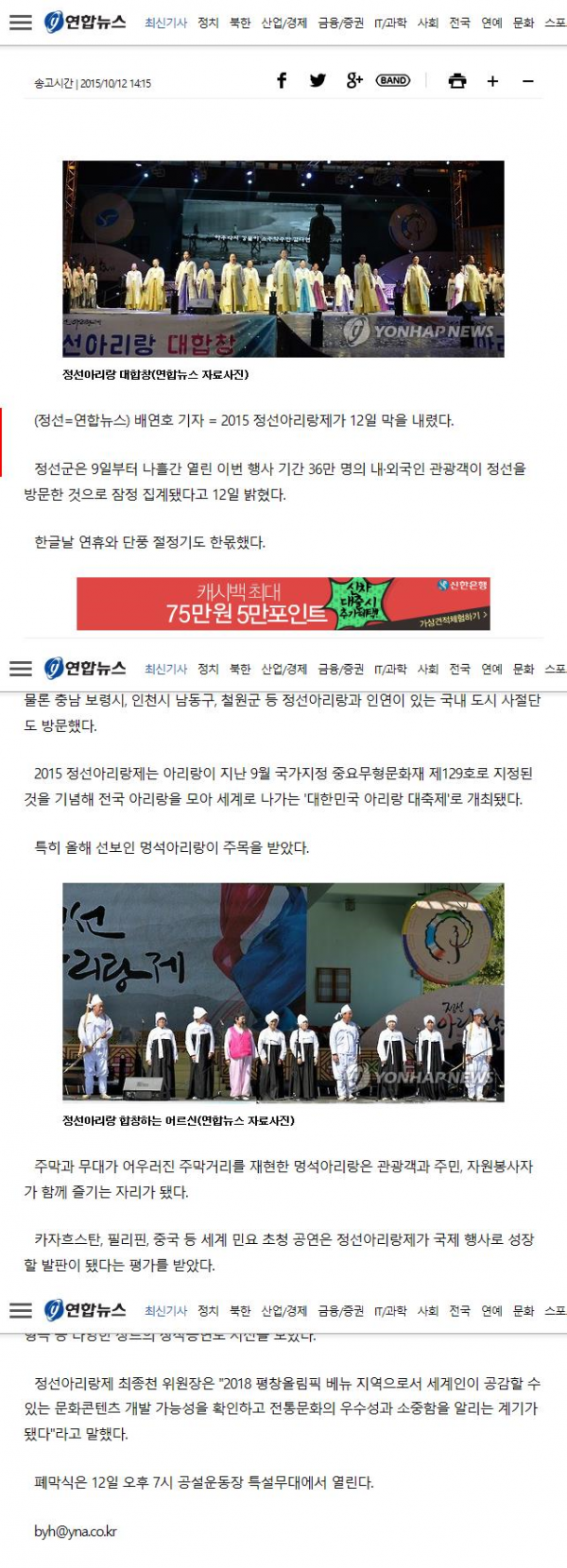 대한민국아리랑 대축제 정선아리랑제 36만 방문