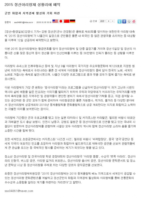 2015 정선아리랑제 성황리에 폐막