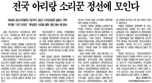 정선아리랑의 소식을 빠르고 신속하게 전달 해 드리겠습니다.