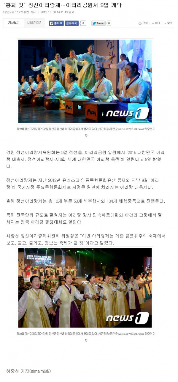 정선아리랑의 소식을 빠르고 신속하게 전달 해 드리겠습니다.