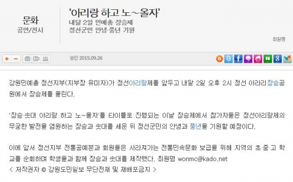 정선아리랑의 소식을 빠르고 신속하게 전달 해 드리겠습니다.