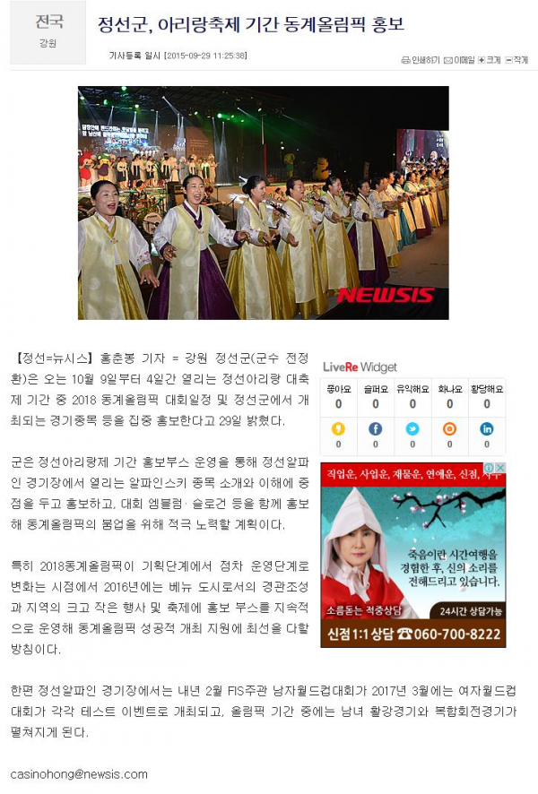 정선군, 아리랑축제 기간 동계올림픽 홍보