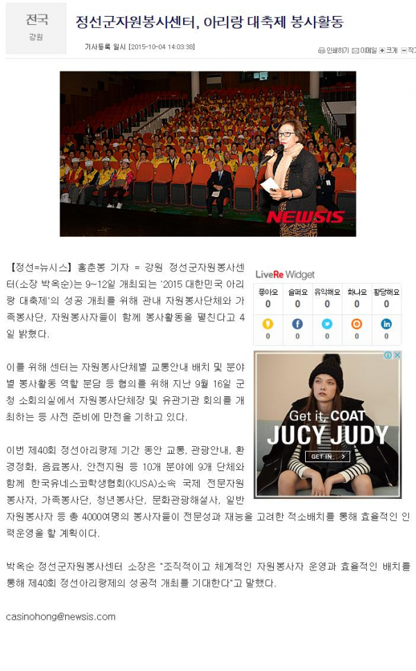 정선군 자원봉사센터, 아리랑 대축제 봉사활동